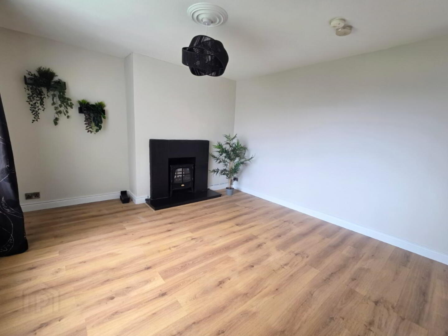 with feature tiled surround fireplace, granite tiled hearth and  laminated wooden flooring.