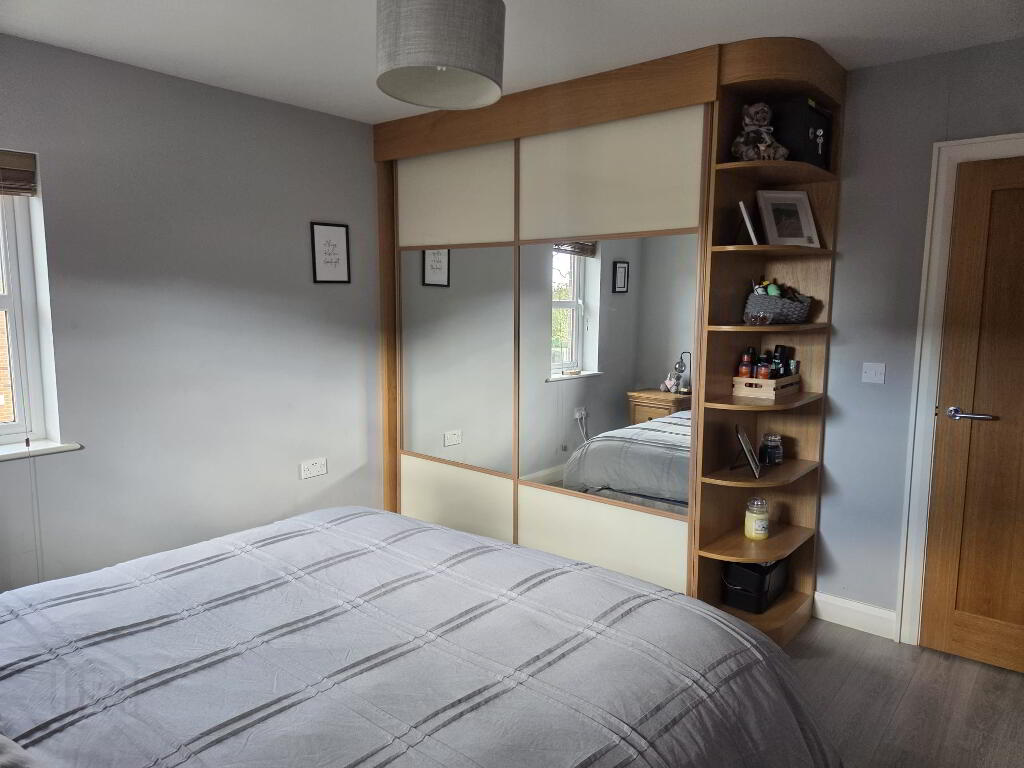 with built-in wardrobes, part mirrored sliding doors and display shelving