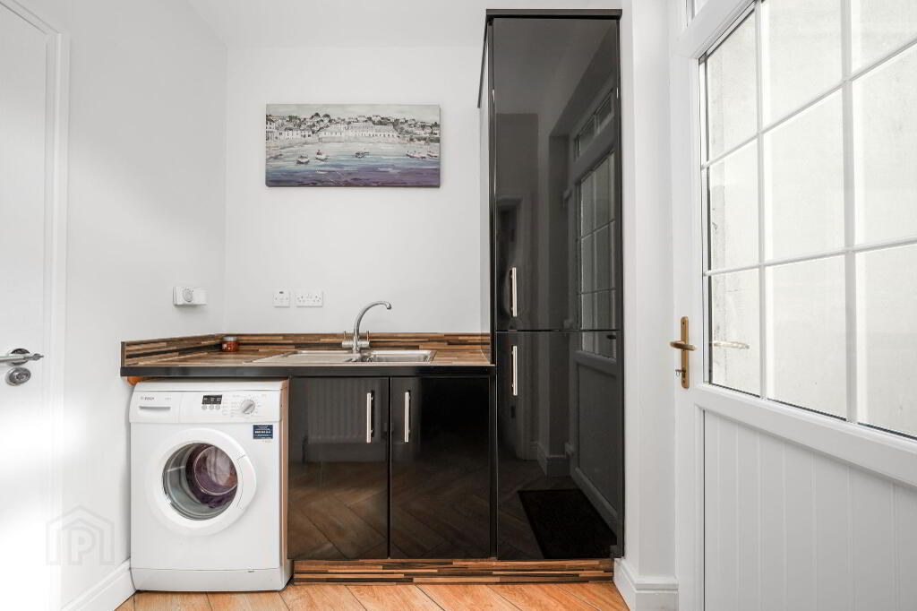 with stainless steel sink unit, low level units, plumbed for automatic washing machine, tiled floor