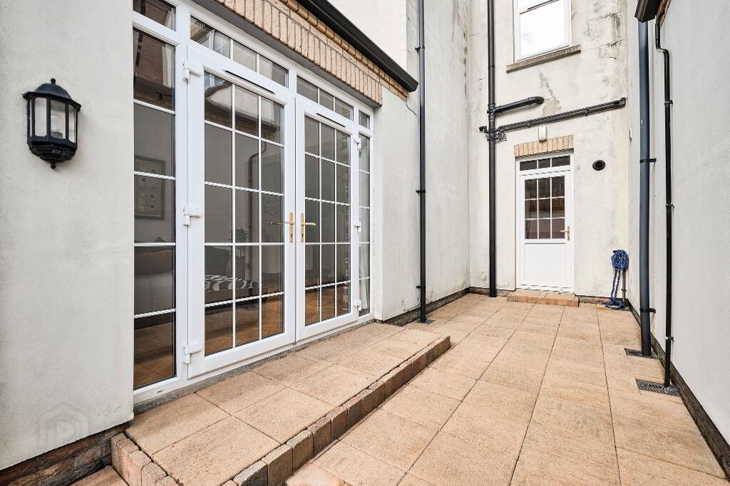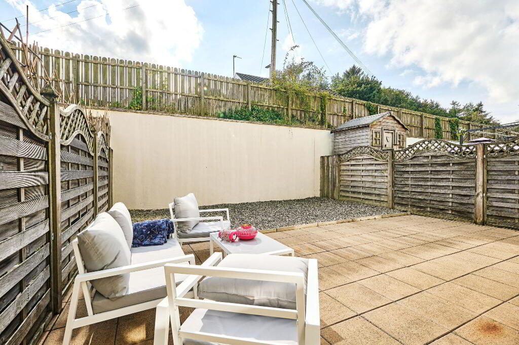Wall and fence enclosed garden to rear part paved part in coloured stone