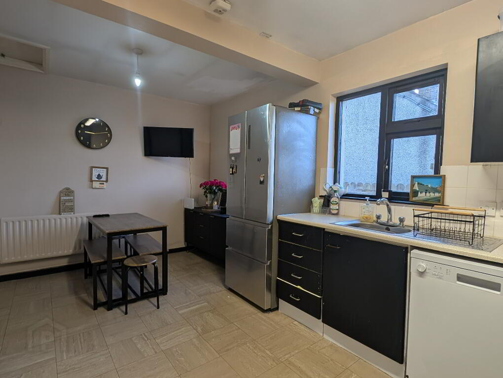 with stainless steel sink unit, low level units, plumbed for automatic washing machine