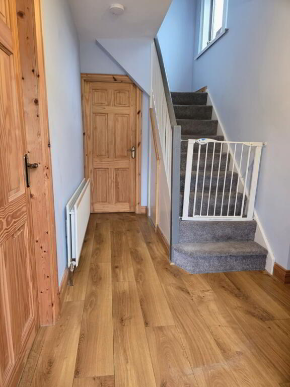 with storage under stairs and laminated wooden flooring