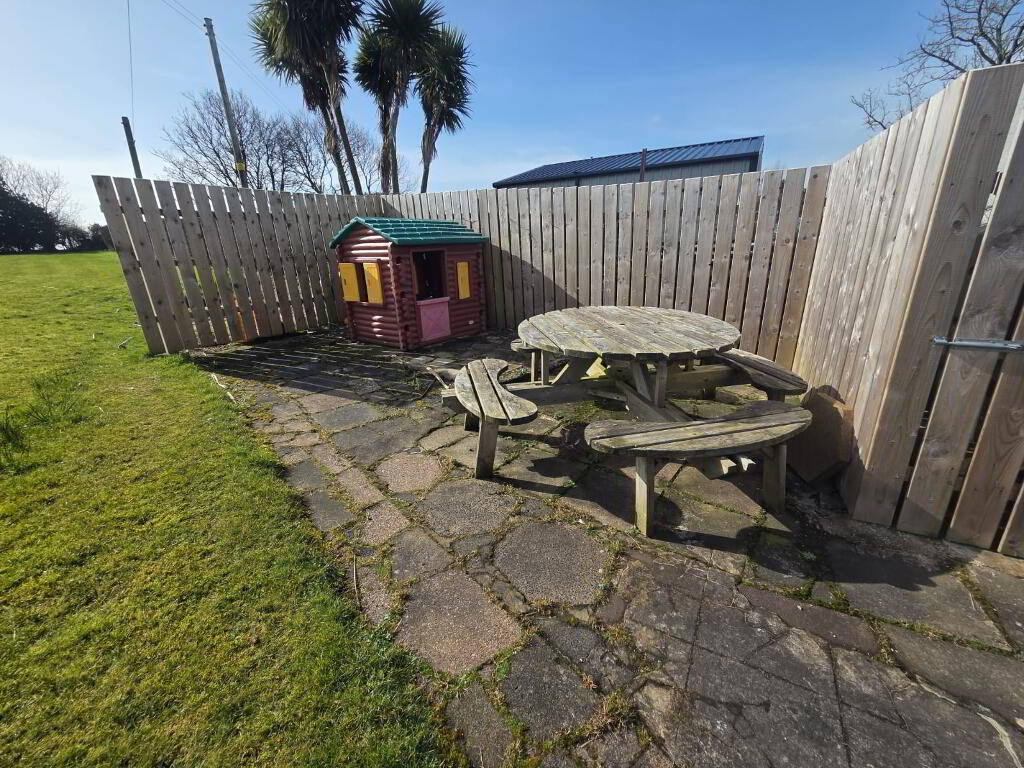 Extensive gardens in lawn to side and rear. Paved Patio/BBQ area